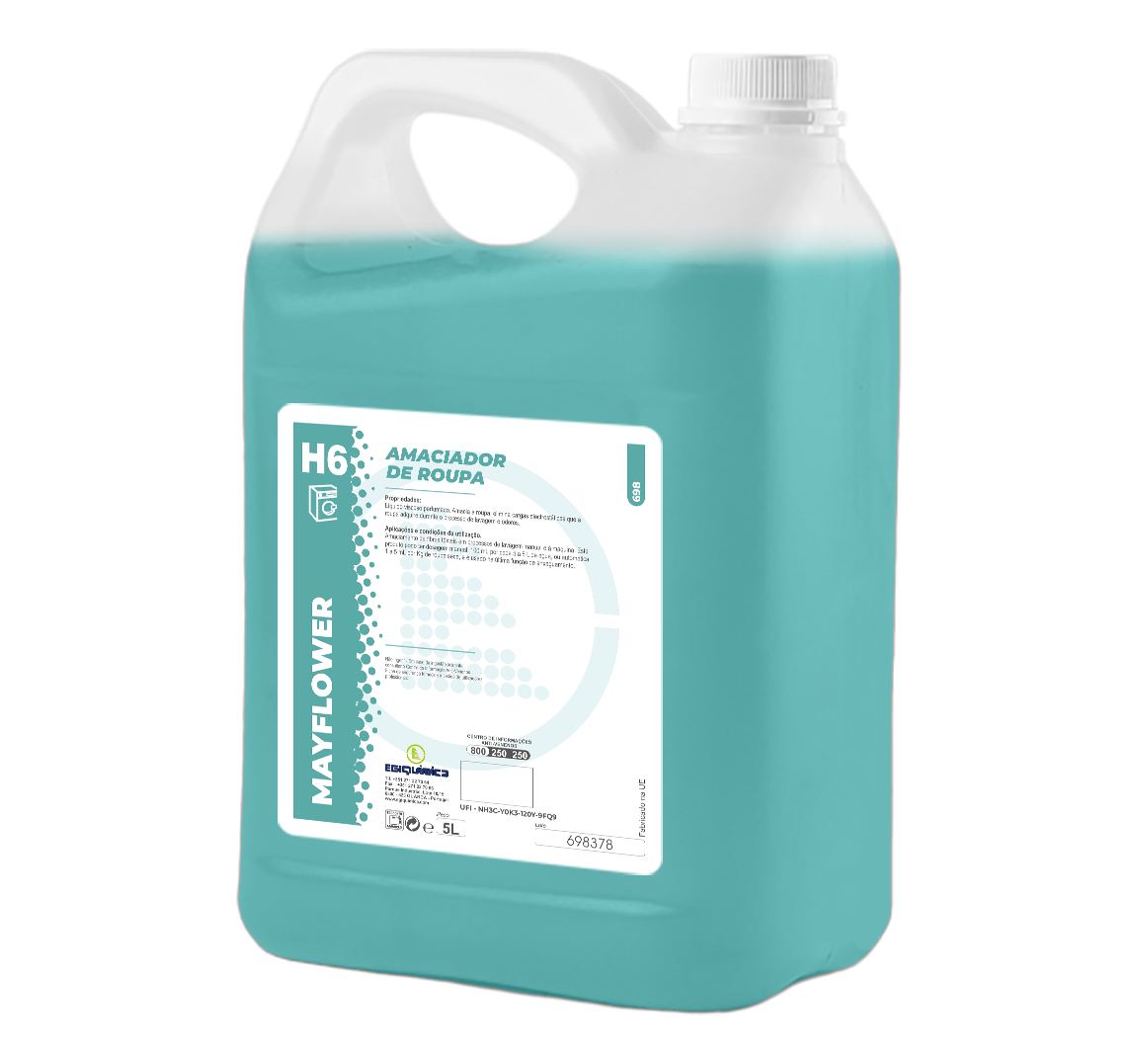 Amaciador têxtil perfumado com aroma floral, suaviza as fibras têxteis nos processos de lavagem manual e à máquina.